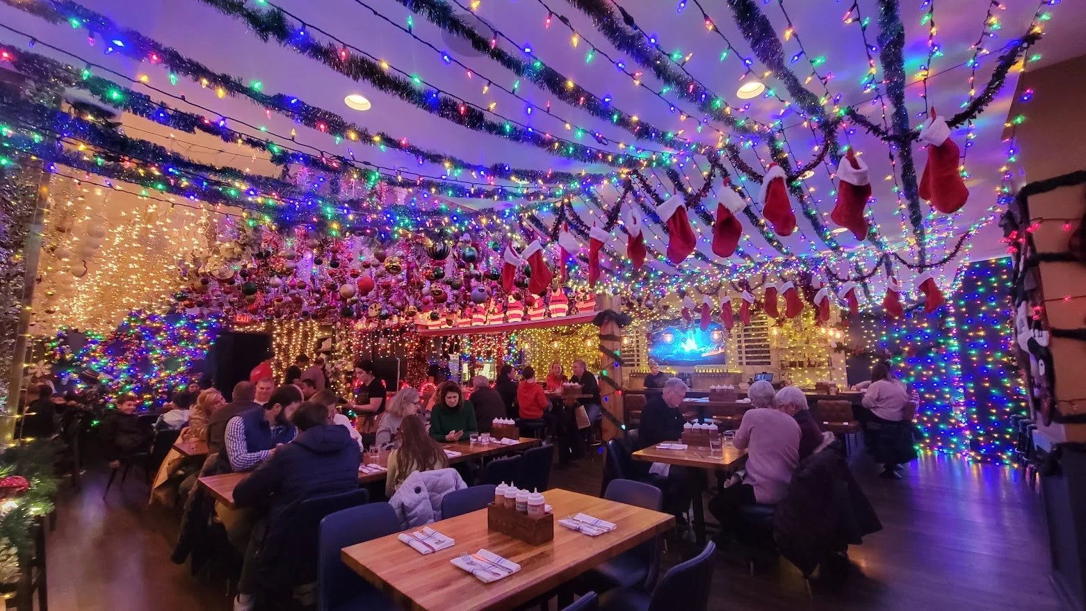 Pit & Tap is known for their true Texas style barbeque made in their giant, wood burning smoker. They also are known for going ALL OUT for Christmas! Check out their insane decorations!!