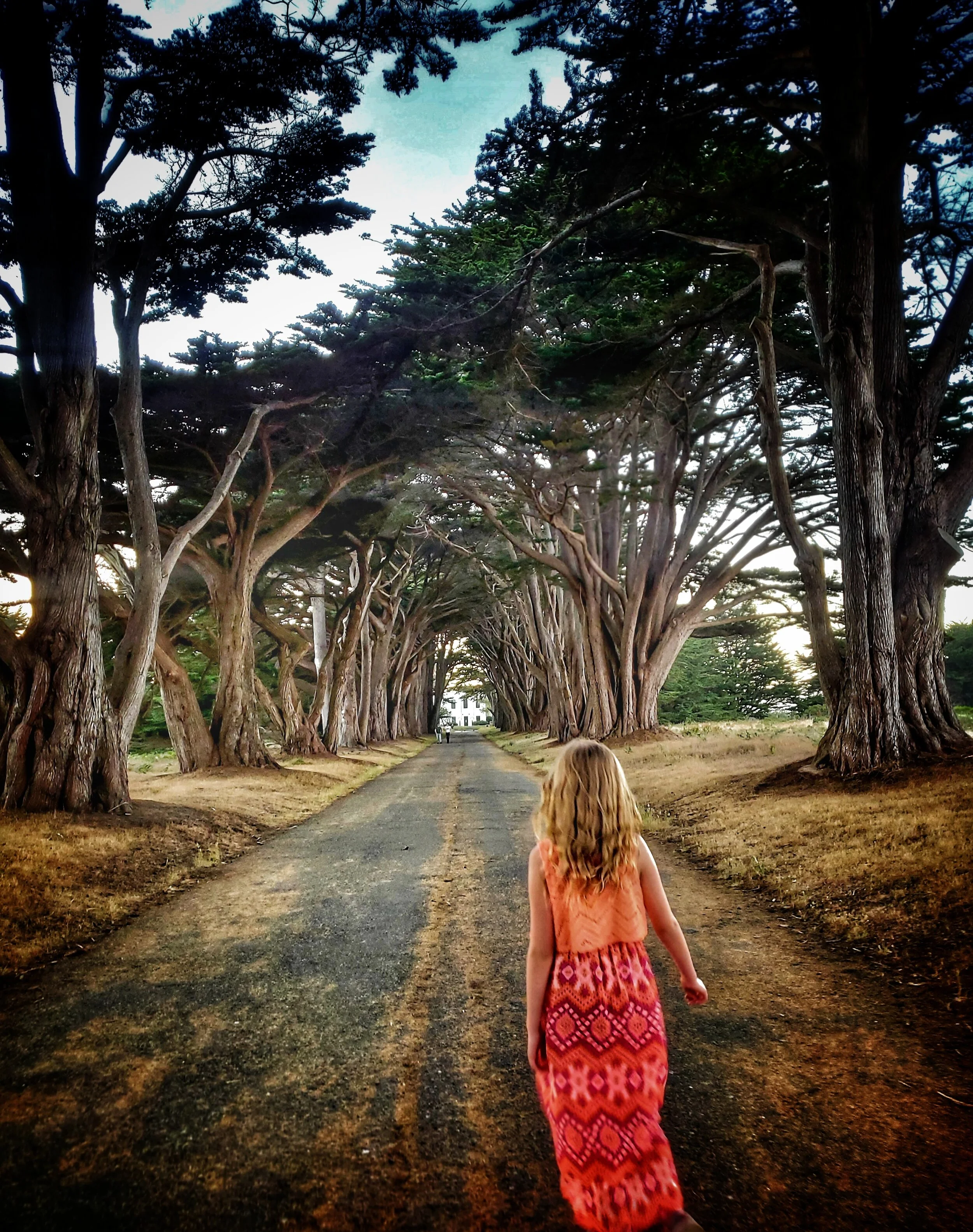 We arrived at the Cypress Tree Tunnel at sunset which was just plain lucky because it was drenched in golden light just like out of a fairytale. You need to park on the street because the gates are closed so you can’t drive in, but if you walk up to the fence you can easily walk under to go inside and take photos.